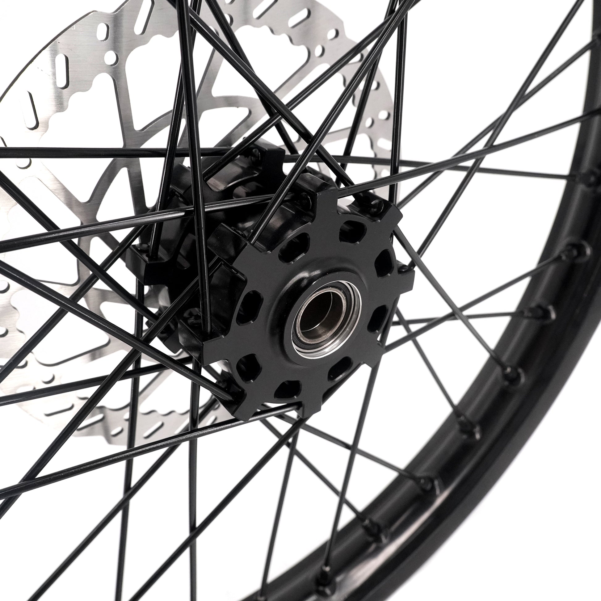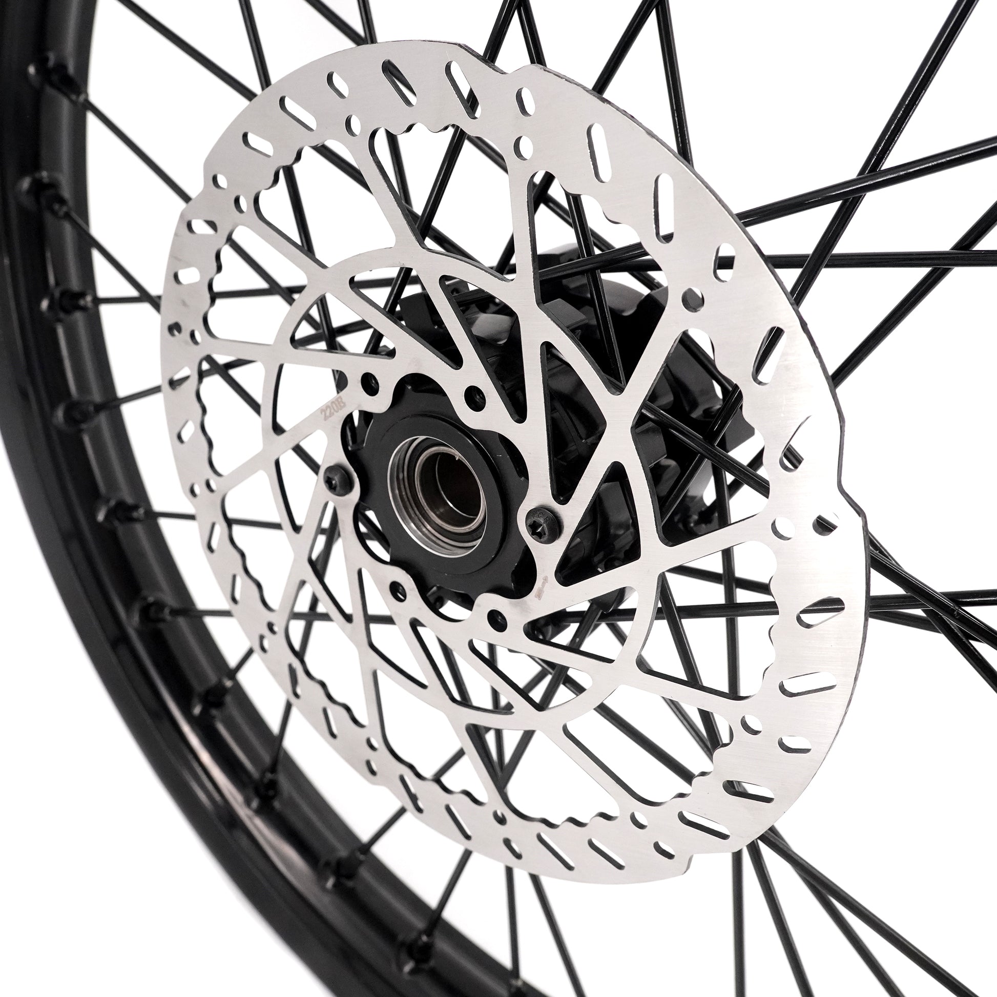 - Enhanced braking performance (achieved through these modifications) – front wheel won’t fit stock disc, so we've included one for free. And the OEM Talaria MX5 front disc fits perfectly too!